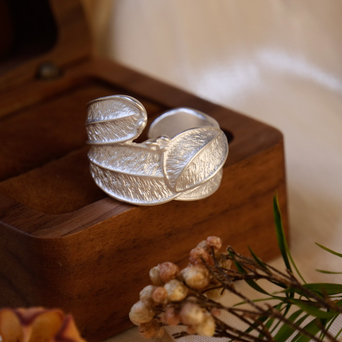 Vintage Fallen Leaf Ring with Irregular Design and Textured Antique Finish