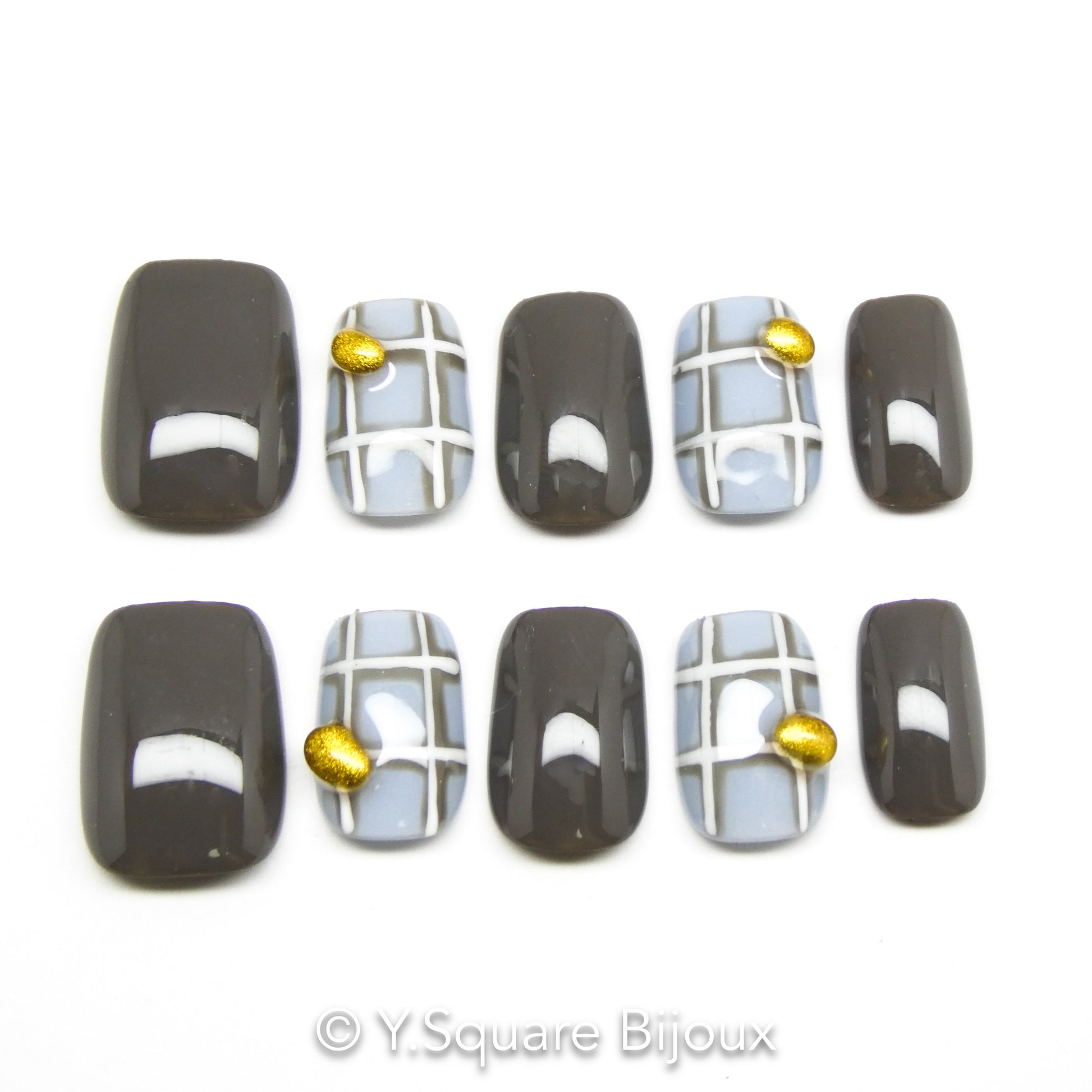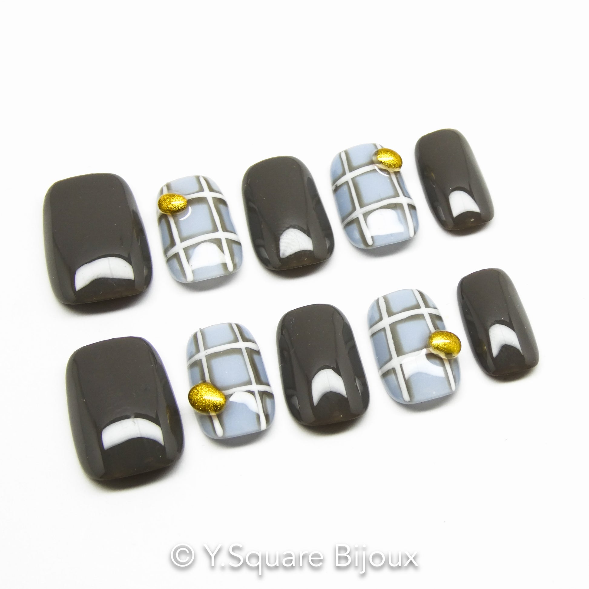 < Ashley > Y.Square Faux Ongles Fait Main Réutilisables